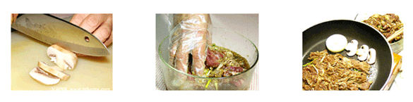 - Para sazonar la carne: 1 cucharada de salsa de soja, 1 cucharada de cebolla de verdeo picado, 1 cucharada pequeña de ajo picado, 1 cucharada pequeña de aceite de sésamo