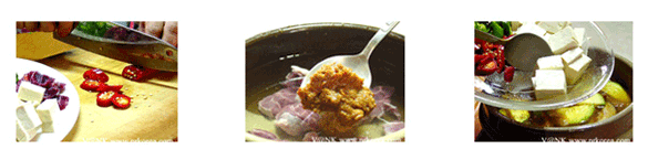 - Pasta de ají molido : 2 cucharadas grandes de pasta de ají molido, 1 cucharada grande y media de salsa de soja, 1 cucharada de ajo picado, 2 cucharadas grandes de cebolla de verdeo picado, 1 cucharada grande de azúcar, 2 cucharadas grandes de aceite de sésamo, 1 cucharada grande de sésamo molido.